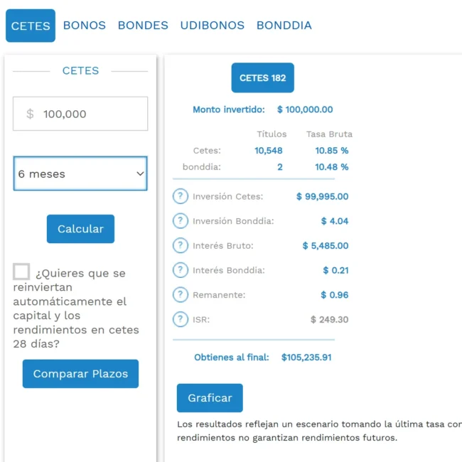 Cetesdirecto Zinsrechner